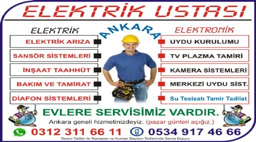 Ankara Çankaya, Keçiören, Yenimahalle, Mamak, Dikmen, Etimesgut Geneli Elektrik Arıza tamir bakım hizmetleri veren Elektrikçi Yiğit usta yılların vermiş olduğu bilgi birikim Elektrikçi-Elektrik Ustası Elektrik Şirketleri Uydu Kurulumu ve deneyim ile ankara geneli verdiğimiz hizmetimize Elektrik Firmaları konularında elektrikçi olarak gezici servis araçımızla hizmetinizdeyiz.