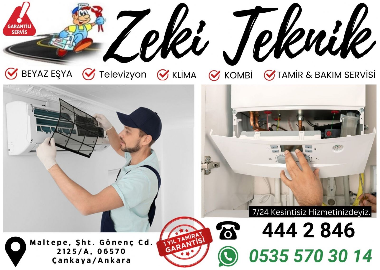 Çankaya Kombi Tamir hizmetimiz 7 gün 24 saat esasına dayanır. Gece yarısı meydana gelen kombi arızalarında dahi Çankaya'nın her mahallesine (Gaziosmanpaşa, Yıldız, Ayrancı, Dikmen, Kırkkonaklar, Ümitköy, Bilkent) hızlıca ulaşabiliyoruz. Arıza tespit ücreti talep etmiyoruz, sadece yapılan işlem ve kullanılan parça ücreti alınır. Yetkili servis fiyatlarına göre çok daha ekonomik çözümler sunuyor, aynı zamanda garanti kapsamında işlem yapıyoruz. Kombiniz için ücretsiz keşif ve fiyat teklifi almak için web sitemizden iletişim numaramıza ulaşabilirsiniz.